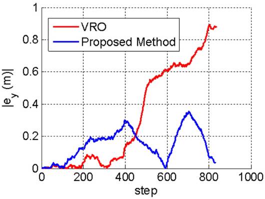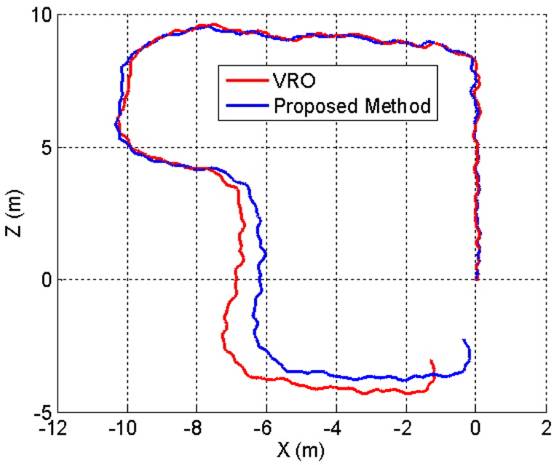 The VR-Odometry (VRO) method uses the 3D data points of the SIFT feature correspondences between two image frames to compute the pose change. VRO based dead reckoning may be use to determine the device pose over time. We developed an Extended Kalman Filter (EKF) to track the SIFT feature over time to reduce the VRO dead reckoning error. Experiments were performed to test the performance of the proposed EKF estimation method and the results were compared with that of the VRO dead reckoning method. The results demonstrate that the EKF method has a much smaller position error. Taking the above experiment as an example, the total length of the path is 44 meters. The final position errors (in percentage of path length) of the EKF and VOR dead reckoning are 4.96% and 1.26%, respectively. The EKF has a much smaller error in Y axis at each step.